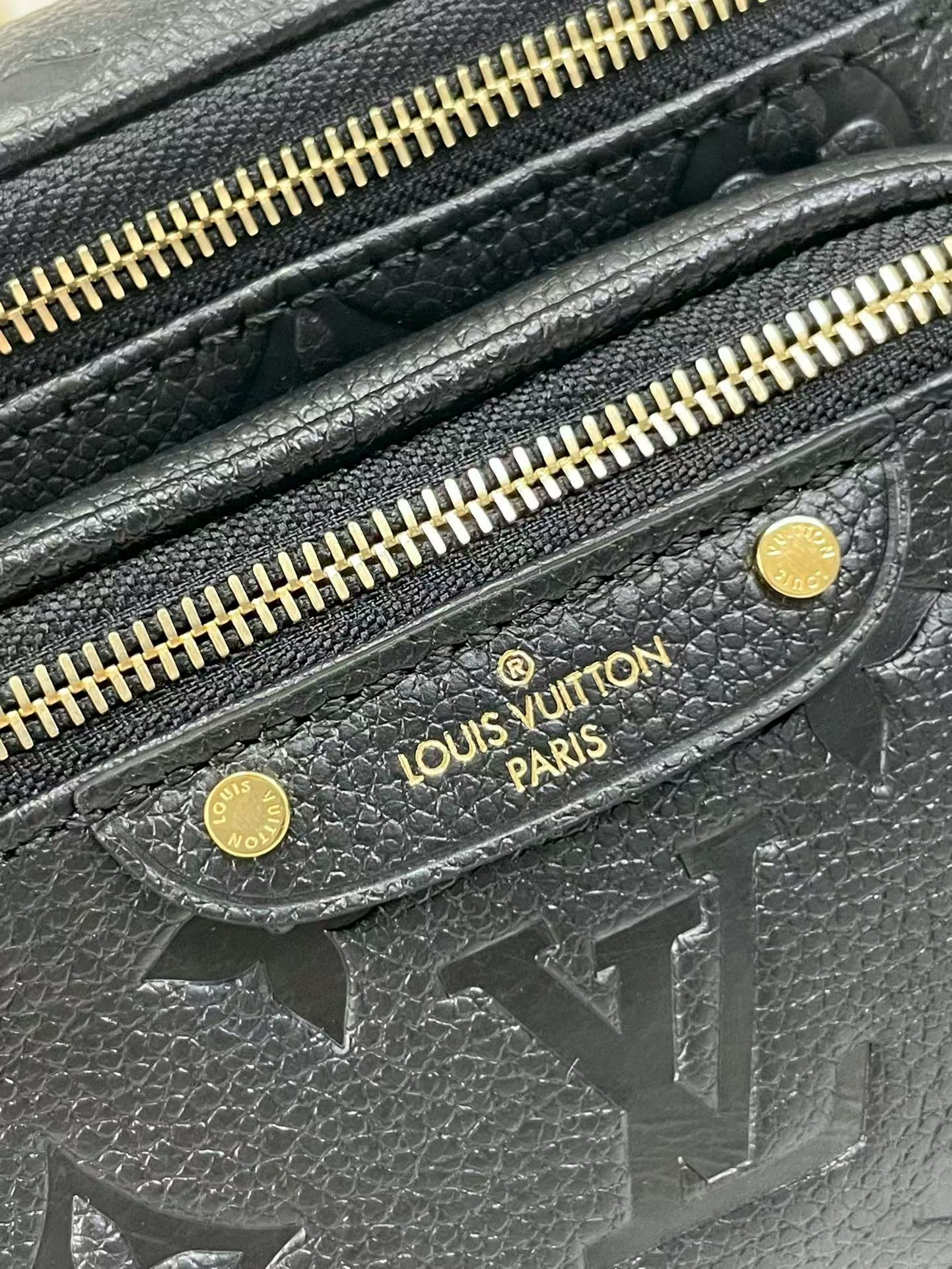 The Mini Bumbag is reinterpreted in supple, grained Monogram Empreinte leather, which is embossed with the Monogram pattern. This on-trend piece features a removable, adjustable strap and a removable, gold-tone chain for different looks and carry options. It has a zipped main compartment and a zipped front pocket with an embossed leather tag.
