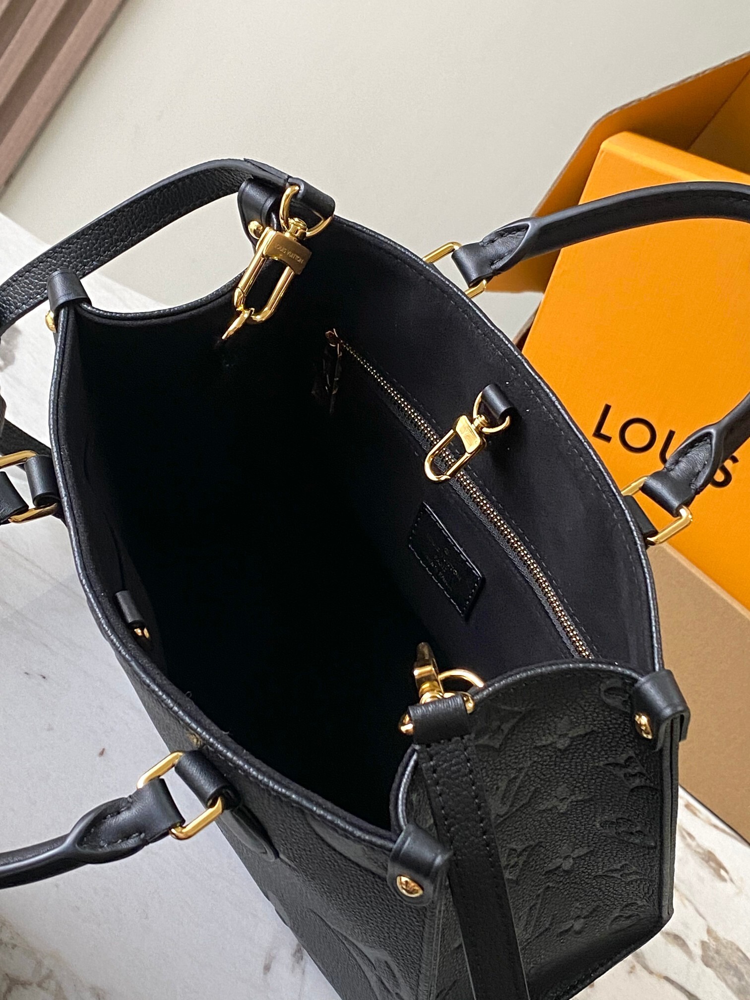 The OnTheGo BB is an on-trend micro-bag fashioned from Monogram Empreinte leather, with Monogram embossing. This tiny tote boasts all details of the full-size model – including the distinctive handle mounts and riveted leather tabs on the corners – and can fit a smartphone and compact wallet. A removable and adjustable strap enables shoulder carry.