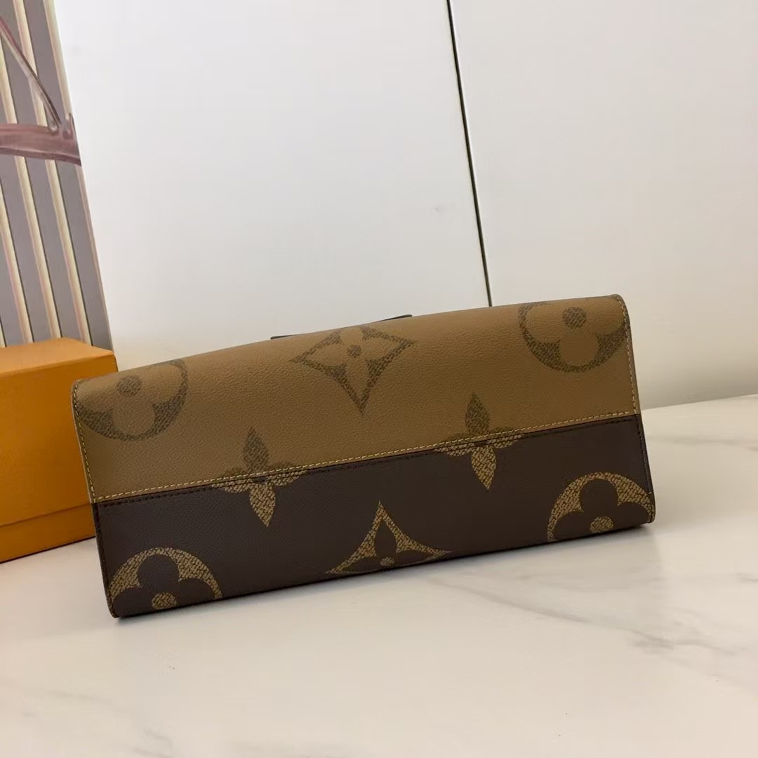 The name says it all: OnTheGo MM takes care of business or shopping, with plenty of room for a busy woman’s essentials. With Giant Monogram canvas on one side and Monogram Reverse on the other, it is virtually two bags in one. Twin Toron top handles and two shoulder straps offer several different carry styles, for extra versatility.
