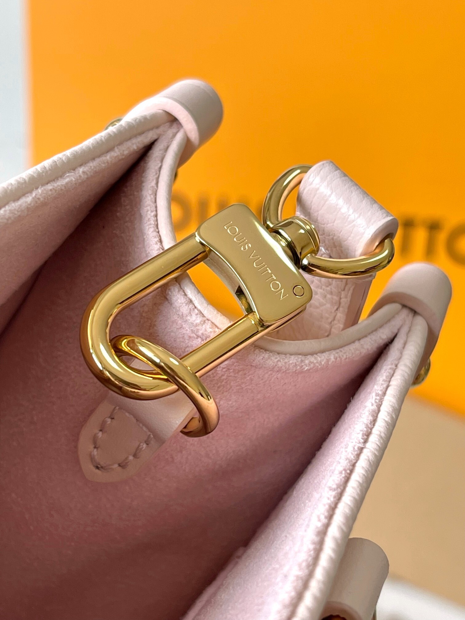 The OnTheGo BB is an on-trend micro-bag fashioned from Monogram Empreinte leather, with Monogram embossing. This tiny tote boasts all details of the full-size model – including the distinctive handle mounts and riveted leather tabs on the corners – and can fit a smartphone and compact wallet. A removable and adjustable strap enables shoulder carry.