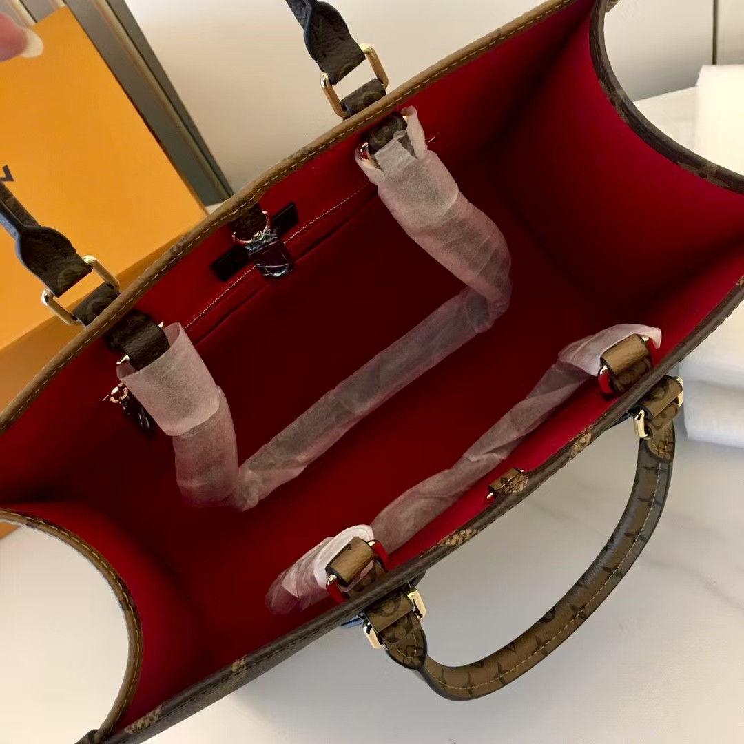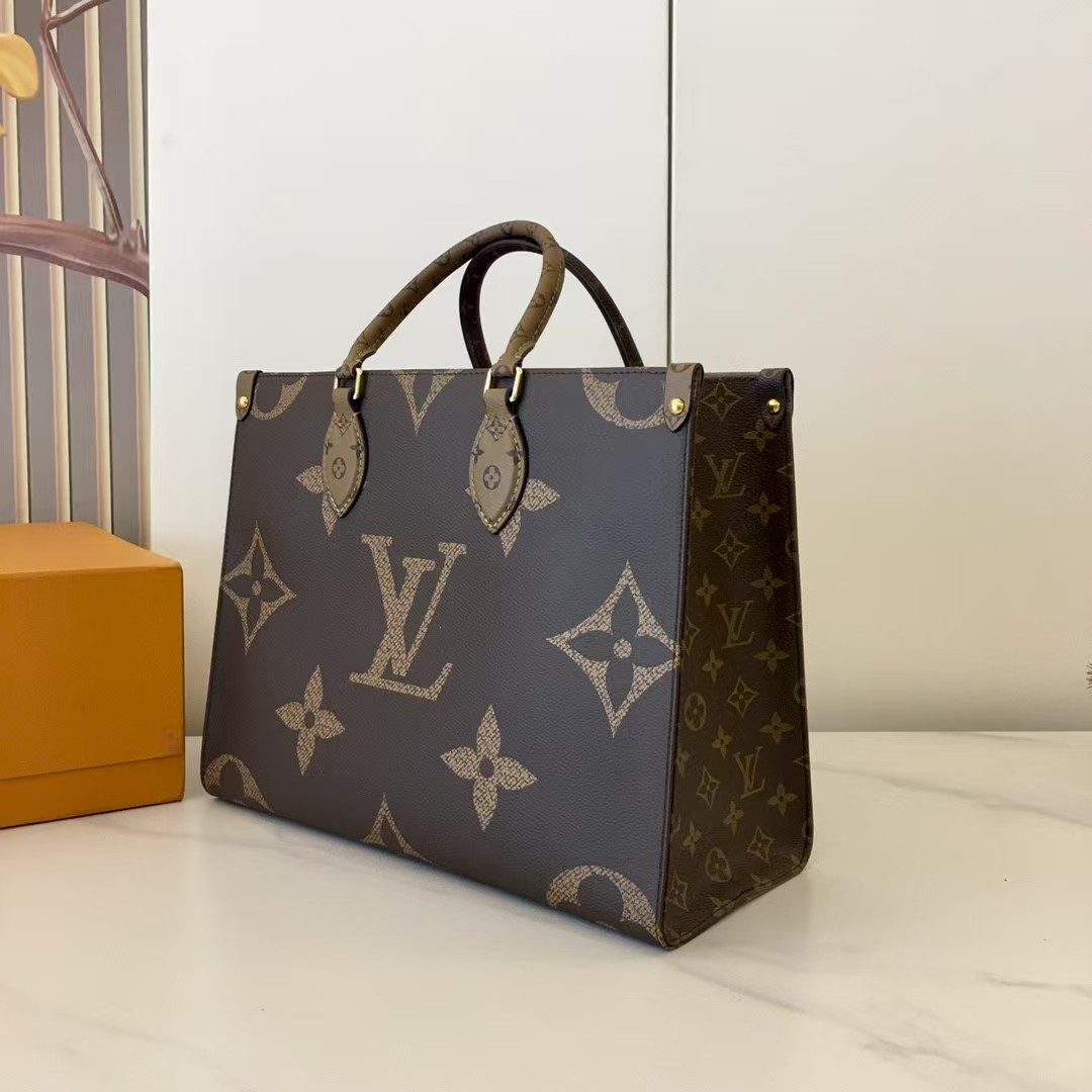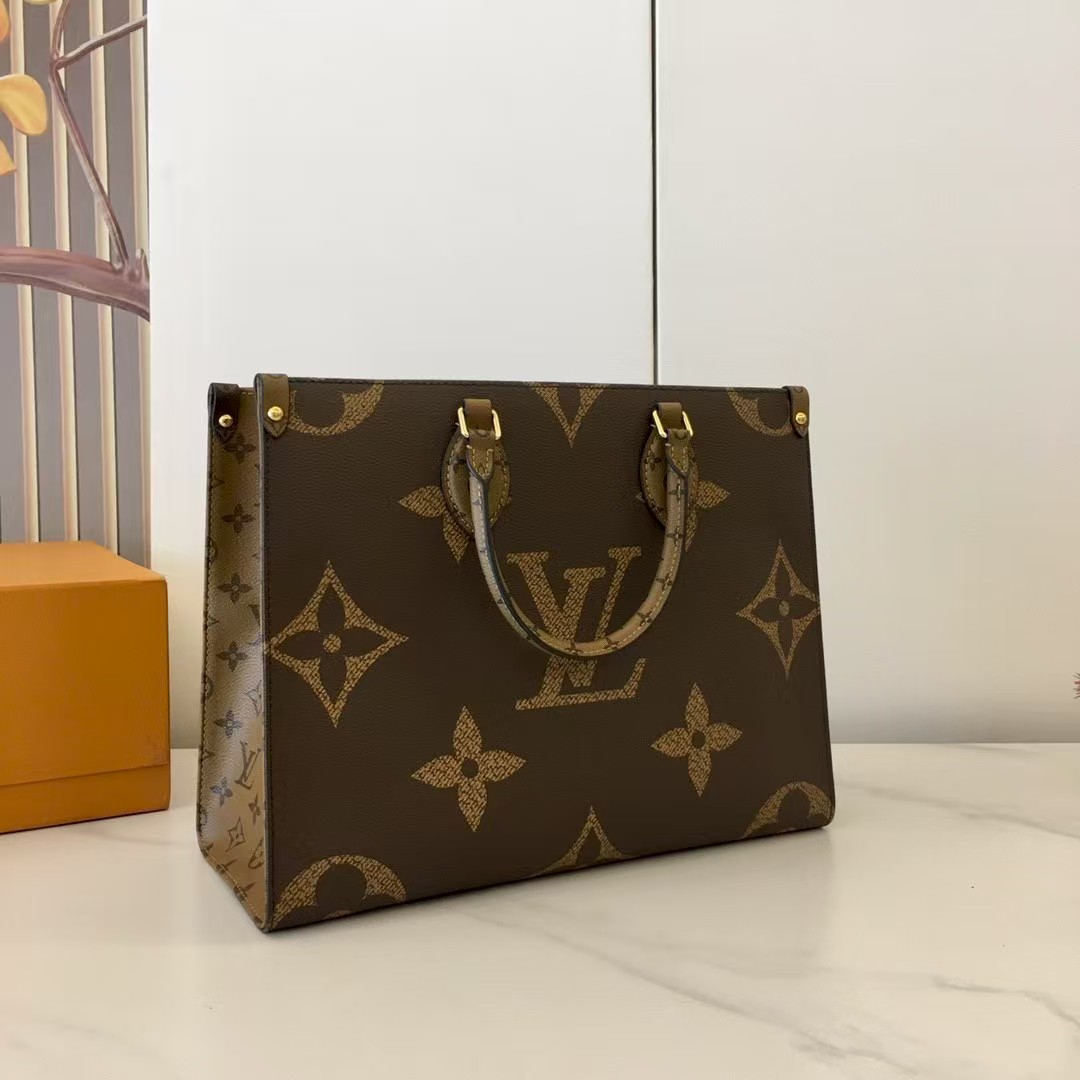 The name says it all: OnTheGo MM takes care of business or shopping, with plenty of room for a busy woman’s essentials. With Giant Monogram canvas on one side and Monogram Reverse on the other, it is virtually two bags in one. Twin Toron top handles and two shoulder straps offer several different carry styles, for extra versatility.